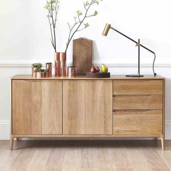 Teak Luna Sideboard The Teak Luna Sideboard modern design of this Jepara Furnico collection is a fine example of quality workmanship, thick Teakwood tops with a protective lacquered finish which enhances the natural teak grain. Dovetail drawer boxes and chunky teak legs and metal handles, would be suitable for both modern and traditional interiors.